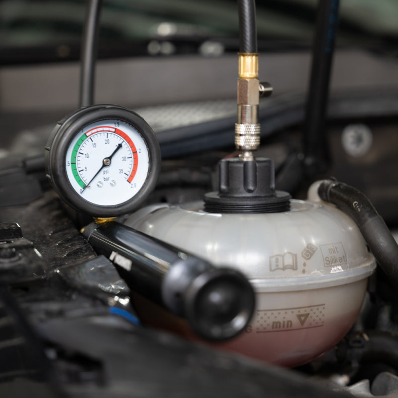 If you've got a paddock of project cars, a fleet of work vehicles, or just like to help all of your friends with their daily drivers, you need tools that help you get maintenance done fast. This Mishimoto 28-piece cooling system pressure tester and vacuum refill tool kit lets you diagnose and fix cooling system issues quickly so you can get back on the road or track faster. Once you've found and fixed your leak, use the vacuum purge and refill tools to fill the cooling system and avoid hours of waiting for the air to bubble out on its own.This 28-piece kit includes 17 color-coded adapters and 3 test caps to fit almost every vehicle, as well as adapters for testing many common radiator caps. This tool kit is packaged in a durable plastic case that keeps your tools safe and organized and is backed by our Mishimoto Lifetime Warranty for a lifetime of service.